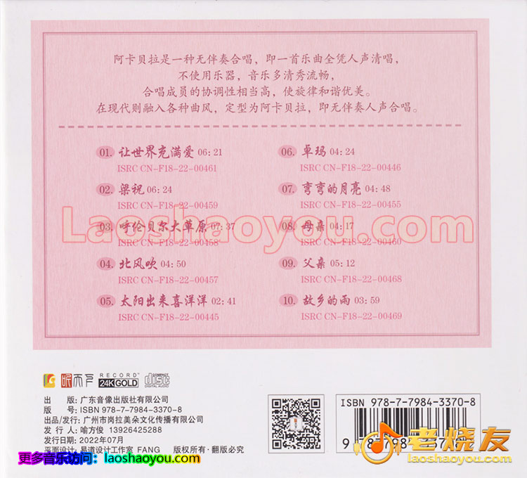 《爱的礼赞》专辑节选十首与“爱”相关的主题曲,首次采用阿卡贝拉的演绎方式呈现。奇妙构思,让这张满是“爱”的专辑在润物无声中尽享心灵的滋养!