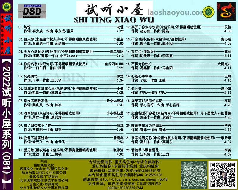 试听小屋是新的系列,将一年收藏的新歌曲归纳在试听小屋。分集发布,