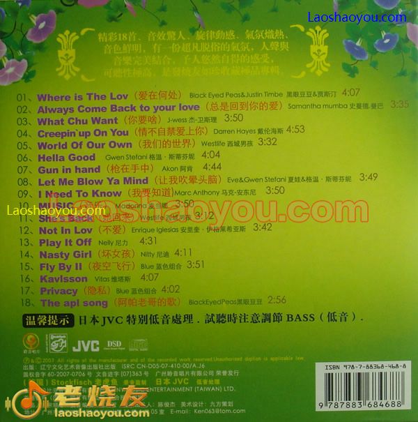 温馨提示: 日本JVC特别低音处理. 试听时注意调节BASS(低音).